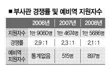 2일 국방부에 따르면 지난해 7500명을 선발한 부사관 지원자 수는 1만 5686명으로 경쟁률이 2.1대1이었다.2007년 경쟁률 2.3대1과 비교해 큰 차이가 없다.그러나 제대 후 다시 부사관에 지원한 사람은 897명으로 전년 515명 대비 74%나 늘었다.중사로 제대하고 거꾸로 하사로 다시 임관하는 경우도 적지 않다.