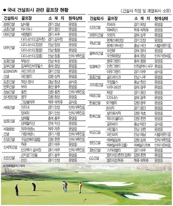 자금압박에 매도문의 잇달아… "아직은 실거래보단 탐색전 상황"건설회사가 운영 중이거나 건설 추진중인 관련 골프장에 각계의 관심이 쏠리고 있다. 최근 일부 업체의 퇴출 및 워크 아웃 결정이 나면서 자금 압박에서 벗어나려는 건설사들이 골프장 매각에 나설 것으로 분석되기 때문이다.