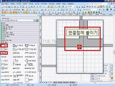 2. 드로잉 연결선 없이 셰이프 연결오피스 비지오 2007은 자동 연결 기능이 추가돼 한 번의 클릭으로 세이프를 연결하고 같은 간격으로 배치하고 정렬할 수 있다. 연결된 셰이프를 이동하면 연결된 상태가 유지되고 셰이프간의 연결선 경로가 자동으로 조정된다.