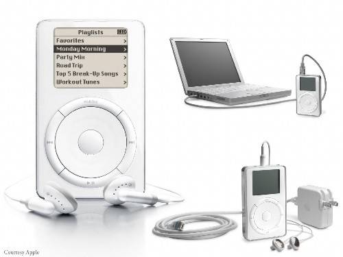 아이팟은 액정표시장치, 내장 배터리, 대용량 메모리와 클릭휠 방식의 사용자 인터페이스를 매킨토시와 같은 편리하면서도 간결하게끔 만들고 이를 컴퓨터에 설치한 소프트웨어인 아이튠즈을 통해 음악과 기타 데이터들을 관리하고 동기화시키는 제품이다.