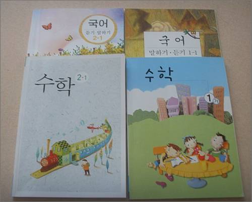 그 밖에도 외형이 달라지고 국어책 삽화가 보기 좋아졌으며, 교과서마다 붙임딱지나 참고자료가 붙어있어 새로운 느낌도 듭니다. 겉표지는 재활용이 어려운 코팅지이고 종이도 더 하얀 것으로 변했는데 대신 아주 무거워졌습니다. 2006년도부터인가 책표지가 코팅이 되어 미끄럽고 재활용이 안 되어 아깝다고 생각했는데 책속지까지 변한 것이 좀 의아합니다. 종이가 하얗게 될수록 돈도 많이 들고 눈도 피곤해진다는 이야기를 들었기 때문인가 봅니다. 게다가 국어책 세 권만 들어도 가방이 무거워서 아이들에게 사물함에다 책을 두고 숙제할 것만 가지고 다니라고 신신당부를 했습니다.