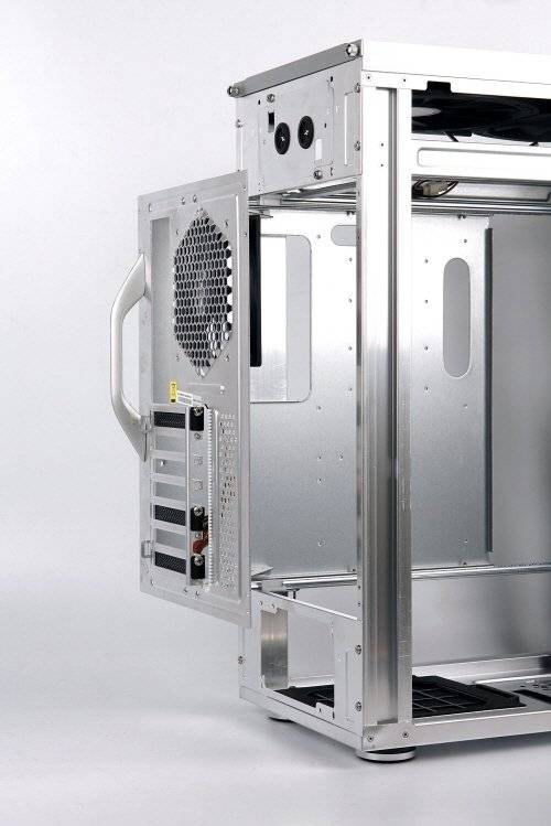 리안리의 'PC-X500'은 팬과 지지대를 제외한 모두 부분이 알루미늄이다. 진한 회색빛이 다부지고 고급스럽다. 파워 유저를 겨냥한 제품답게 메인보드, 그래픽카드 등이 담기는 1구역과 파워서플라이, ODD, 하드디스크가 놓이는 2구역으로 나뉘었다. 각 구역에 적합한 냉각 구조를 갖춘 것이다.