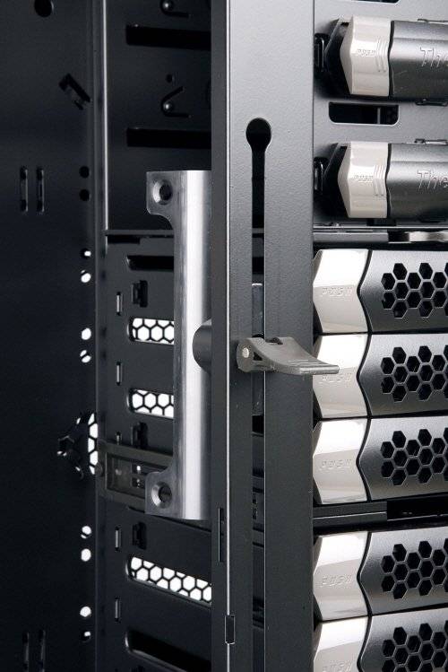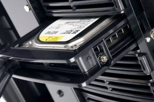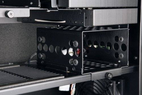 2개로 나눈 3.5인치 드라이브 베이에는 리안리 기술이 접목된 고무캡을 끼워 진동을 줄였다. |