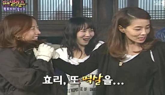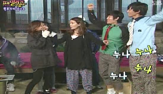 이에 발끈한 이효리는 김종국의 몸뻬 패션을 가리키며 "꼴이 이게 뭐냐"고 공격했다. 이때 또다시 김원희가 나섰다. 그녀는 "내가 사줬다"며 이효리의 멱살을 다시 잡으며 '패밀리'의 권력에 정점에 있음을 다시 한번 확인시켰다. "잘못했다"며 맥없이 꼬리 내리는 이효리의 약한 모습에 또다시 "원희!"를 외치는 남성 멤버들의 뜨거운 환호가 이어졌다.