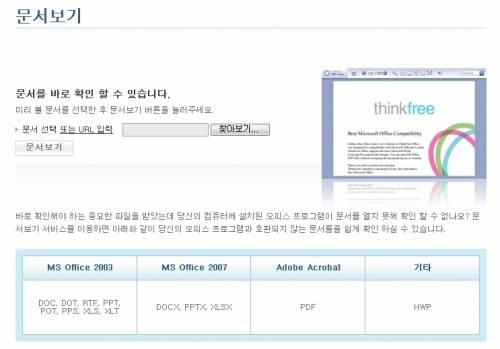현재 파일을 온라인에서 볼 수 있는 뷰어는 '유니 페이퍼' 및 '오픈API' 규격을 지원합니다. DOC, XLS, PPT, PDF 등 일반 문서 파일은 물론이고 HWP 파일까지 지원하는 것이 중요한 장점이죠. HWP 뷰어를 따로 설치할 필요가 없는 셈입니다. 씽크프리 뷰어는 플래시로 구현, PDF 기술 등 변환 기능이 핵심입니다.
