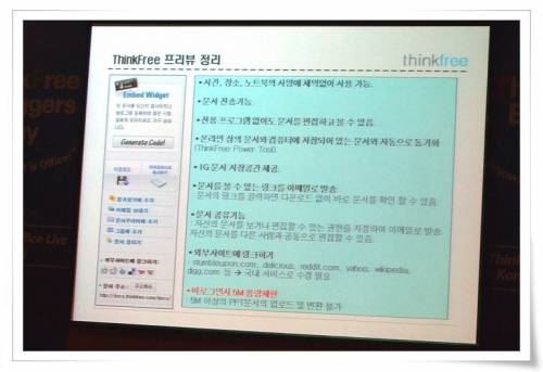 또한 플래시 기반이기 때문에 문서를 손쉽게 웹페이지에 'embeded' 할 수도 있습니다. 이 밖에도 씽크프리 기술을 다른 회사에 제공해 수익을 낼 수도 있겠지요. 예스폼 등 다른 문서 관련 회사에 제공을 예정하고 있다고 합니다. 네이버 웹메일 미리보기 역시 씽크프리 오피스 라이브 기술 중 하나입니다.