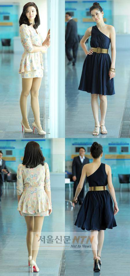 송선미, 류태준, 정성환 주연의 SBS 아침드라마 '녹색마차'(극본 송정림ㆍ연출 김진근)의 제작발표회가 4일 오후 서울 목동 SBS에서 열린 가운데 배우 송선미, 황지현이 각선미를 뽐내고 있다.