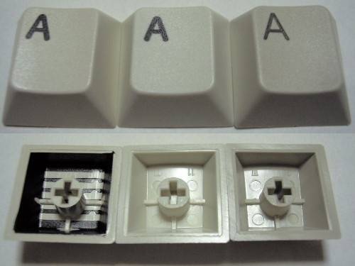 ■키캡흔히들 기계식 키보드 유저들은 기계식의 부드러운 키감이 좋아서 기계식 키보드를 사용한다고 한다. 이 키감의 경우 대부분은 스위치 즉 축에 의해서 결정이 되지만 키캡에서 오는 키감의 차이도 적지 않다. 같은 축을 쓰는 키보드인데도 미묘하게 키감이 다른 경우가 있는데 이런 것은 대부분 키캡의 차이에서 오는 변화이다.