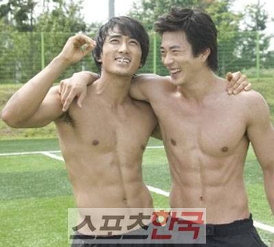 '황금비율' 송승헌… 가슴과 허리의 비율 예술적'복근짱' 권상우… 전면 복직근, 상체 근육과 조화
