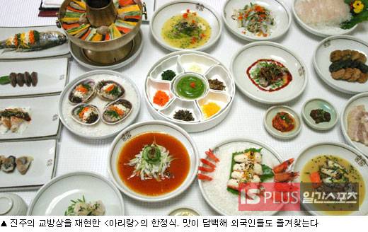 방 6개 규모로 크지도 작지도 않은 진주 아리랑 한정식은 하루 평균 50~60명의 손님이 꾸준히 찾는다. 평일·주말·휴일 상관없이 일정하다고 한다. 기본 상차림 또한 13년 전 문을 열었을 당시와 대동소이하다.