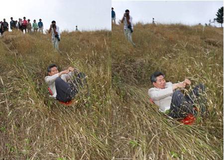 한 블로거가 올린 사진에서 그는 여학생들과 사진을 찍으며 그들보다 낮은 자세로 서 있기 위해 엉거주춤한 포즈도 마다하지 않는다. 여학생들의 기분을 위해 볼썽사나운 자세를 하고도 얼굴 가득 웃음을 짓던 노 전 대통령. 그들에게 노 전 대통령은 언제나 포근한 '노짱 오빠'였다.