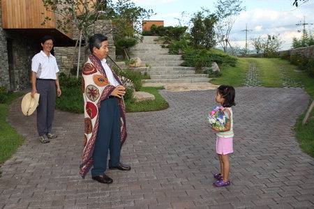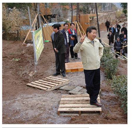 그는 대통령 재임 시절 외국의 '힘 있는' 자 누구에게도 고개를 숙이지 않았다. 부시 미국 대통령에게도 그랬고, 고이즈미 일본 총리에게도 그랬다. 아키히토 일왕과 악수를 할 때도 그의 허리는 민족적 자존심만큼 꼿꼿했다. 북한 김정일 위원장을 만났을 때도 마찬가지다.