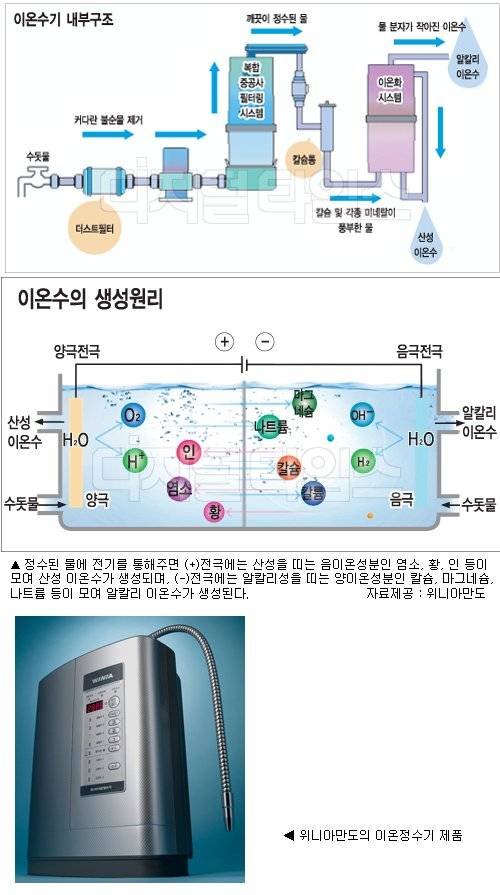 음극 '알칼리성 환원수'ㆍ 양극 '산성 이온수'로 분리성분 따라 활용도 달라 … 국내시장 2500억 규모 성장