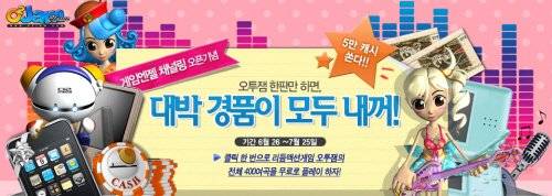 한편 나우콤은 게임엔젤과의 채널링 서비스를 기념해 `가입없이 즐기면, 대박 경품이 모두 내꺼` 이벤트를 26일부터 오는 7월 25일까지 실시한다. `오투잼` 접속 후 게임을 한번만 즐겨도 2만 캐시가 지급되며 첫번째 접속 후 1주일 내 10레벨을 달성한 유저에게는 3만 캐시와 함께 아이팟터치, 닌텐도DS, MP3등 다양한 경품에 자동응모의 기회가 부여된다.