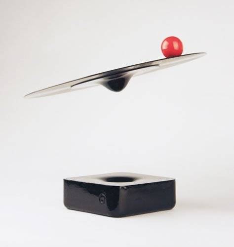 중력을 거부한 체 공중에 둥둥 떠 있는 LP판. 이런 독특한 그림이 가능한 비밀은 자력에 있다. 자력의 반발력을 이용해 LP를 공중에 띄우고 LP판 위에 빨간색 헤드를 얹어 LP에 담긴 소리를 현실로 끄집어내는 것이다.