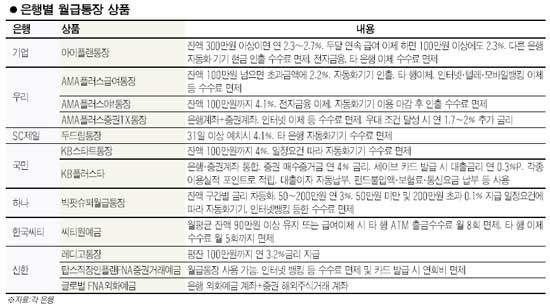 ● 눈길 끄는 월급통장평균잔액 100만원 이하면 되레 고금리은행·보험·증권·카드 복합계좌 상품도