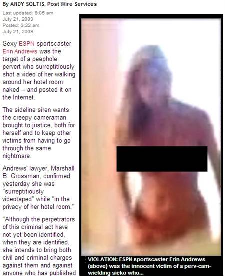 에린 앤드류스의 누드동영상은 호텔방 그의 객실 내에서 몰래 촬영된 것으로, 현재까지 범인은 명확히 밝혀지지 않고 있는 상태다.