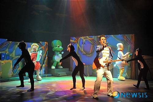 【서울=뉴시스】노용헌 기자 = 23일 오후 서울 롯데월드 예술극장에서 가족뮤지컬 '아기공룡 둘리'의 프레스콜이 열렸다.