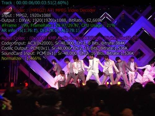 동영상 가속 테스트 1 - MPEG 2 / H.264(AVC)사이버링크의 '파워 DVD 8'에는 하드웨어 디코딩을 지원하는 코덱이 들어있다. 이를 이용해 동영상을 얼마나 잘 재생하는지 테스트 했다. CPU 점유율이 낮을수록 내장 그래픽 칩의 영상 가속 능력이 뛰어나다는 뜻이다. 플레이어는 KMP를 썼다. MPEG-2 기반의 동영상은 모든 제품이 가속을 지원했다.