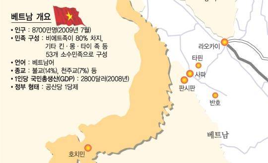 반젠 마을의 시장을 찾은 여행팀이 몽족 상인들과 물건 값을 흥정하고 있다.지난 10일 새벽 5시 베트남 북서부 산간지역 라오카이의 기차역. 전날 밤 수도 하노이에서 야간 열차로 출발, 9시간을 달린 끝에 도착했다. 여기서 자동차로 갈아타고 다시 1시간을 달렸다. 베트남을 식민지배했던 프랑스가 1920년대 관광지로 개발, 유럽과 아시아 등에서 매년 약 10만명이 찾는 관광지 사파에 다다랐다. 여행객들은 대부분 사파 시내 호텔에 묶으며 서구풍의 카페와 상점을 찾는 관광을 즐긴다.