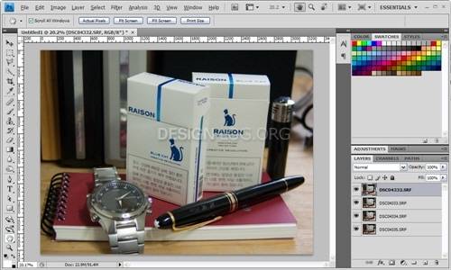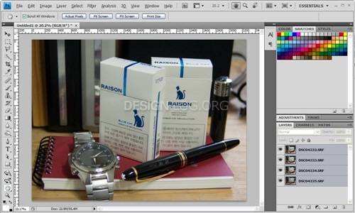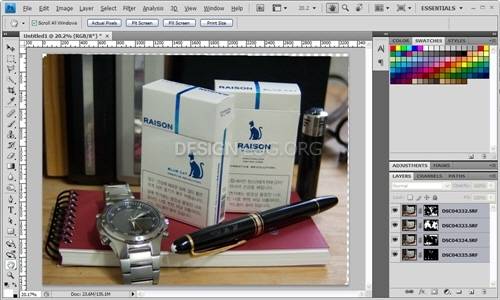 그럼 위의 이미지와 같이 4장의 이미지가 하나의 문서창에 4개의 레이어로 불러 들여진 것을 확인 할 수 있을 겁니다.