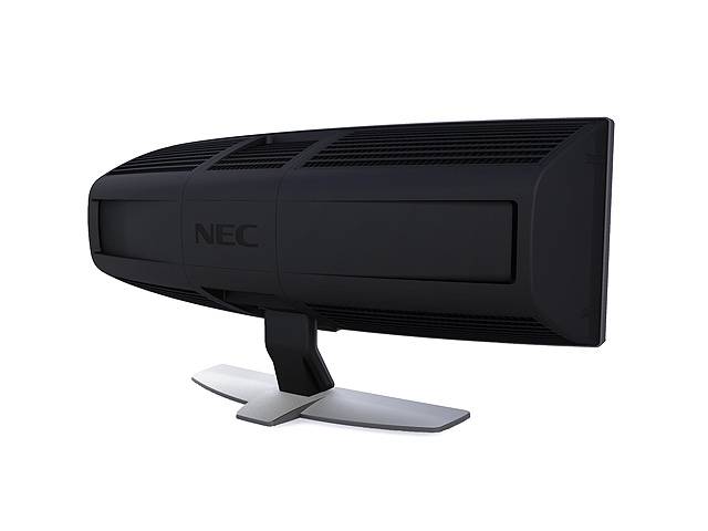이렇게 독특한 디자인을 채용한 덕분에 가로로 길쭉한 화면에 표시되는 정보를 보는데 큰 불편함이 없다는 것이 NEC의 설명이다. 눈과 디스플레이의 거리가 약 60cm일 때를 기준으로 할 때, 수평으로 90도 수직으로는 30도의 시야각을 제공한다.