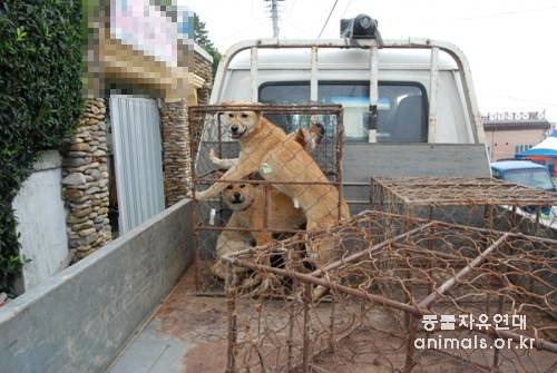 7월 7일에서 9일까지 한 마을에서 업자를 기다려보기로 했다. 그리고 7월 9일 마을을 돌며 개를 사는 업자를 목격할 수 있었다. 그가 타고 있는 트럭 위에는 조금 전까지 어느 집에서 키웠을 것으로 짐작되는 개가 목줄을 하고 이동장 안에 들어 있었다. 업자는 개의 상태에 따라 10만원에서 20만원의 가격으로 주민들과 거래하고 있었다.