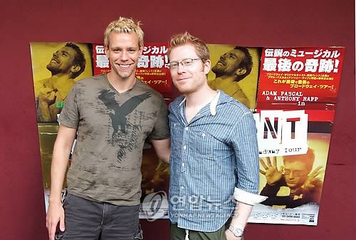 (도쿄=연합뉴스) 14일 뮤지컬 '렌트'의 주역인 배우 아담 파스칼(왼쪽)과 앤서니 랩(오른쪽)이 브로드웨이 오리지널팀 마지막 투어 공연 중인 도쿄 아카사카 ACR씨어터에서 포즈를 취하고 있다. 2009.8.14 < < 뉴벤처엔터테인먼트 제공 > >