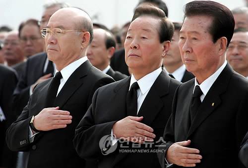 김대중, 김영삼, 전두환 전 대통령이 지난 2006년 10월 26일 경복궁에서 열린 고 최규하 전 대통령 국민장 영결식에서 국민의례를 하고 있다. 2009.8.18 < < 연합뉴스 DB > >