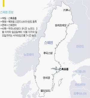 스웨덴은 지형적으로 북유럽의 중심지 역할을 하는 곳이다. 양쪽에 노르웨이와 핀란드가 있고, 남쪽으로는 덴마크와 국경을 맞대고 있다. 스웨덴의 수도인 스톡홀름과 핀란드의 수도인 헬싱키 사이에는 호화여객선인 '실자라인'이 운행되고 있다. 북유럽 여행을 하는 여행자들이 대부분 이용하게 되는 이 여객선은 두 나라를 더욱 가깝게 이어주고 있다.