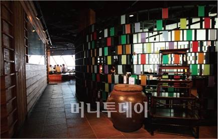 [[머니위크]Food & Joy/ 광화문 한식레스토랑 '비스트로 서울 모락']우리나라 오방색(빨강, 노랑, 파랑, 하양, 검정)이 이렇게 화려한 색이던가? 입구에 들어서자마자 가장 먼저 부딪치는 오방색 파티션이 화사한 기운을 내뿜는다. 파티션을 지나 몸을 살짝 틀면 기울어진 낮은 창틀 아래로 햇빛이 다정하게 쏟아져 들어오고, 식당 한 가운데 놓여있는 넓은 평상의자가 왠지 정겹게 느껴진다. 민속적이면서도 세련된, 화려하면서도 소박한, 동양과 서양의 미가 절묘하게 조화를 이루고 있는 이곳은 서울 종로구 광화문에 위치한 한식전문 레스토랑 '비스트로 서울 모락'이다.