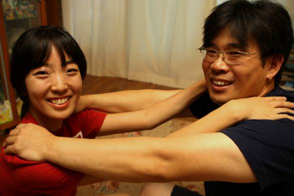 강주석(39)씨가 아내 이은경(29)씨를 보며 활짝 웃는다. 금실 좋은 티가 여실하다. 강씨는 마흔이 다 되는 나이지만, 활력이 넘친다. 배도 불룩하지 않고, 피부는 구릿빛이다. 다부진 몸매가 그의 건강함을 알려준다.