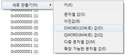 DesktopLivePreviewHoverTime이 보이지 않는 경우 마우스 우클릭 후 '새로 만들기' - > 'DWORD(32비트) 값'으로 새롭게 등록해주면 됩니다.