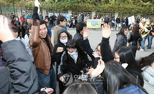 이 시험장과 이웃한 제45시험장인 석정여고 앞에서도 인면여고와 인성여고 등의 1, 2학년 학생 50~60명이 '수능대박' '선배님 힘내세요' 등이 적힌 보드를 들고 응원했다.
