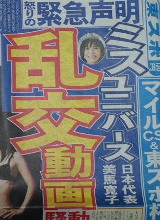 지금 일본은 2008년 미스 유니버셜 일본대표였던 미마(美馬)의 야동 동영상과 관련한 기사가 보도되면서 커다란 파문을 불러 일으키고 있다. 인니뽄 매거진의 취재진의 조사에 따르면 이번 파문의 내용인 즉 13분 25초의 동영상이 인터넷을 통해 급속도로 퍼지면서, 그 주인공 중 한명이 일본을 대표하는 미의 사절단이었던 미마가 아니냐는 의문때문이다.
