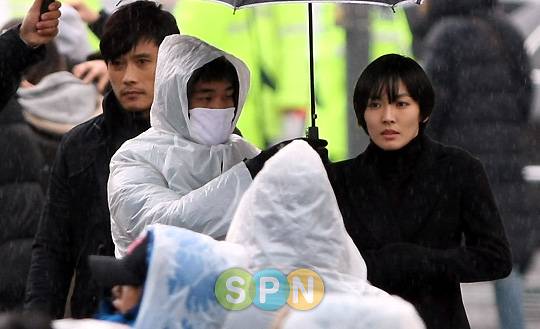 [포토]'아이리스' 이병헌-김소연, '비오는 날씨에 열연'
