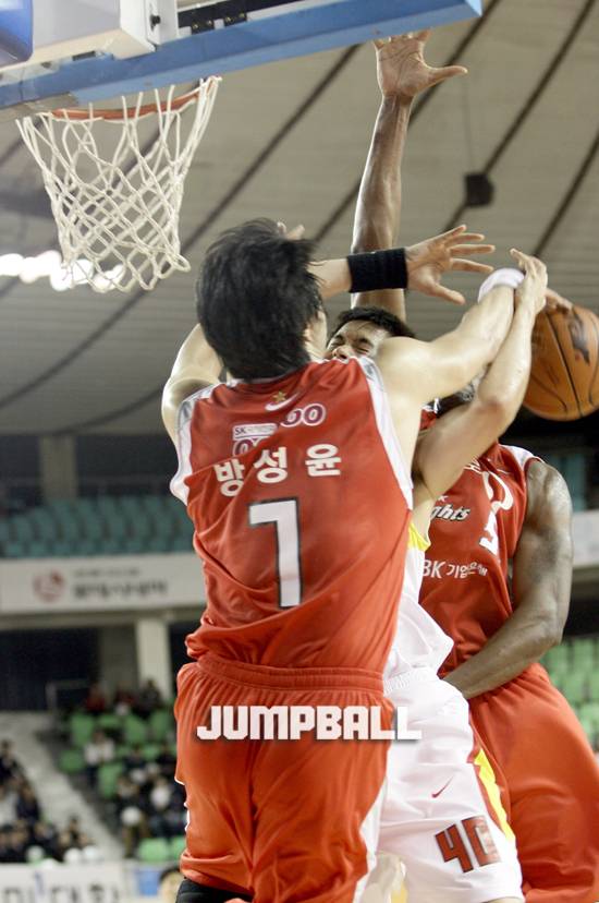 4일 오후 대구실내체육관에서 열린 '2009-2010 KCC 프로농구' 대구 오리온스와 서울 SK의 경기에서 오리온스 이동준의 골밑슛을 방성윤이 블록하자 괴로운 표정을 짓고 있다. 저작권자 ⓒ 점프볼. 무단 전재-재배포 금지2009-12-04 문복주 기자( moonbj@naver.com)