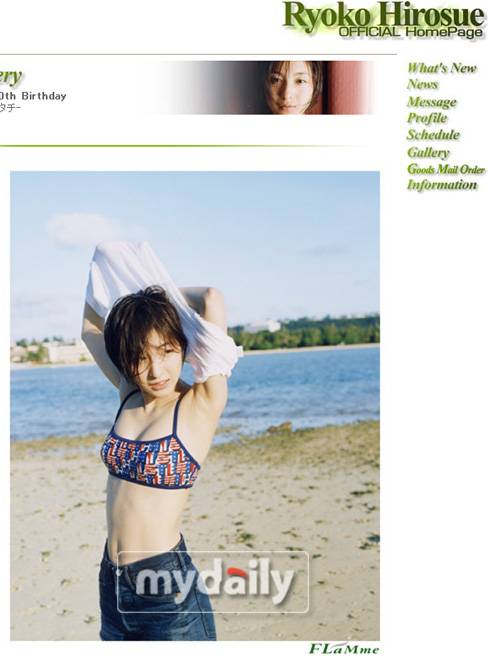 [일본에서 가장 비싼 누드 몸값 1위로 리스트에 오른 '히로스에 료코'(사진=히로스에 료코 일본 공식 홈페이지 캡쳐)]기사 제보 및 보도자료 press@mydaily.co.kr- NO1.뉴미디어 실시간 뉴스 마이데일리( www.mydaily.co.kr) 저작권자 ⓒ 마이데일리. 무단전재 & 재배포 금지 -