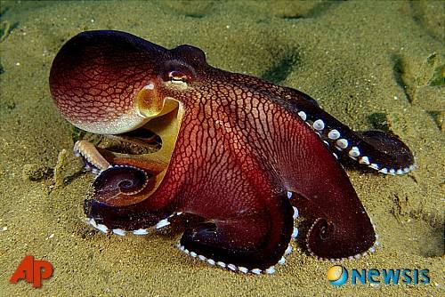 【호주=AP/뉴시스】호주 과학자들이 문어가 코코넛 껍데기를 이용, 은신처를 만드는 장면을 포착해 무척추 동물이 도구를 사용하는 최초의 증거로 기록되게 됐다.