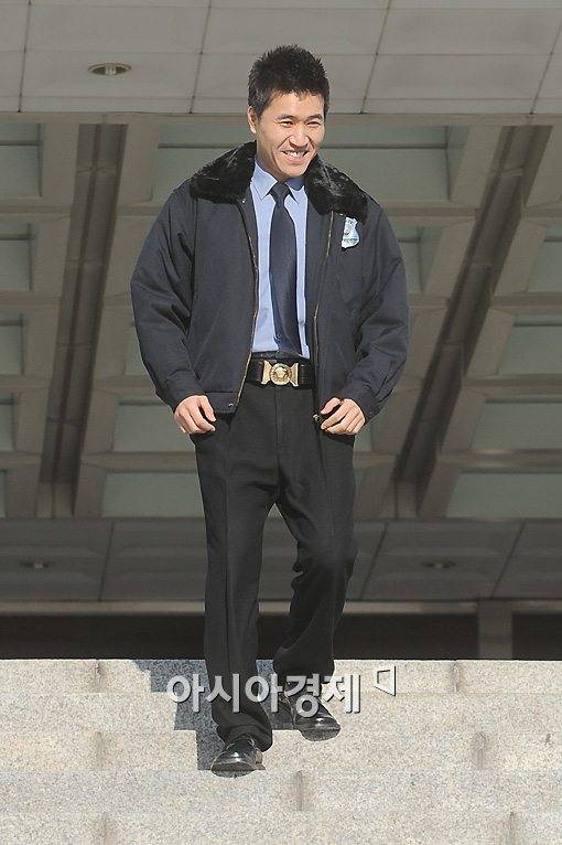[아시아경제 이기범 기자]공익근무요원으로 대체 군 복무를 마친 코요테 김종민이 18일 오전 서초동 서울고등법원에서 소집해제 신고식을 마친 뒤 모습을 드러내고 있다.이기범 기자 metro83@asiae.co.kr< ⓒ아시아경제 & 스투닷컴(stoo.com)이 만드는 온오프라인 연예뉴스 >
