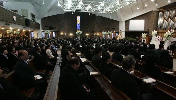▲ 18일 김인규 KBS 사장의 아들과 정몽윤 현대해상 회장의 딸 결혼식이 열린 서울 정동제일교회 본당. 이치열 기자. |