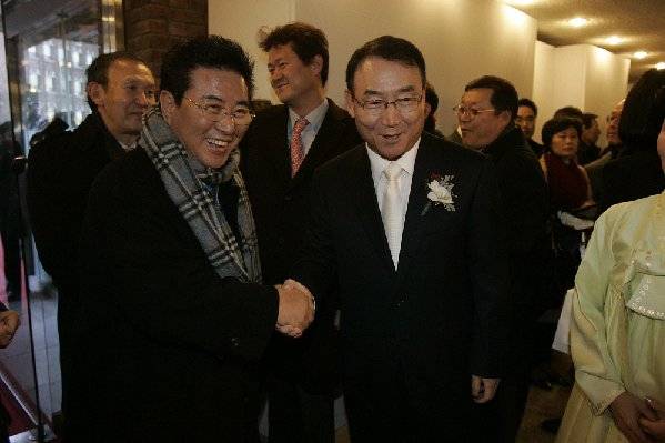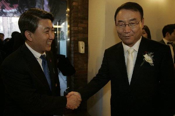 ▲ 하객으로 온 이윤성 국회부의장과 김인규 사장이 악수하고 있다. 이치열 기자 truth710@ |