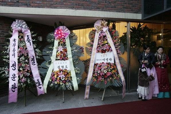 김 사장과 정 회장 양가 모두 화환과 축의금을 받지 않겠다고 했지만 유력 인사의 화환은 꽤 많이 당도했다. 이명박 대통령, 김형오 국회의장, 정운찬 국무총리, 최시중 방통위원장, 허원제 한나라당 의원, 신재민 문화부 2차관, 임태희 노동부장관, 장광근 한나라당 의원, 양휘부 방송광고공사 사장, 박정찬 연합뉴스 사장, 장대환 매일경제 사장, 정세균 민주당 대표, 이재용 삼성전자 부사장 등의 화환이었다.