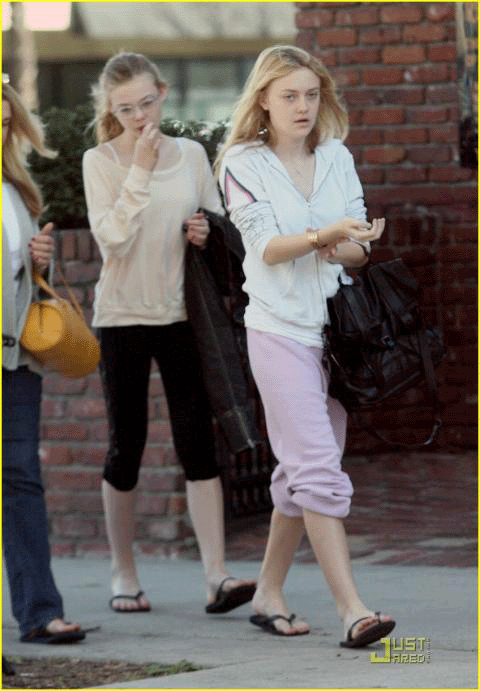 사진=저스트자레드 이 매체는 다코타 패닝(15)과 동생 엘르 패닝(11)이 네일 아트 숍에서 손발톱 관리를 받고 간편한 트레이닝복 차림으로 수다를 떨며 길거리를 활보했다고 전했다. 특히 안경을 낀 수수한 차림의 엘르는 영화 '벤자민 버튼의 시간은 거꾸로 간다'에 출연했을 때보다 성숙해진 모습으로 나타나 취재진들의 눈길을 끌었다.