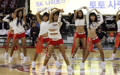 6일 오후 잠실학생체육관에서 열린 2009 남자프로농구 서울 SK 나이츠 대 LG 세이커스의 경기. 치어리더들이 멋진 공연을 펼치고 있다.