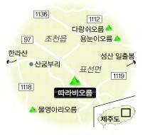 정석비행장 남쪽 가시리 사거리에서 성읍 방향으로 100m쯤 가면 좌측으로 시멘트 포장된 농로가 보인다. 농로 앞에는 '따라비오름 가는 길 약 2㎞'라고 파란색 페인트로 쓴 작은 팻말이 보인다. 주민들이 고맙게도 오름 입구를 알려준 것. 오름은 들머리를 찾는 것이 중요하다. 입구만 찾으면 오르기는 누워 떡 먹기다.