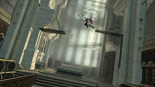 게임의 진행 형태가 흡사한 것도 아쉬운 부분. 전작처럼 대부분의 타겟은 매의 눈을 켠 상태로 전력 질주 후 점프 암살을 시도하면 된다. 이후는 싸우거나 아니면 열심히 달려 빠져 나가버리면 된다. 간단하지 않은가. 게임 내 모든 암살 임무는 다 그렇다. 어떻게 보면 어쩔 수 없는 것이지만 좀 더 다른 형태가 나올 때도 되지 않았을까.