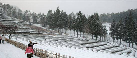 그럼 녹차밭의 겨울 풍경은 어떨까. 최근 잦은 눈으로 인해 차밭 풍경은 180도 바꿔 놓고 말았다.