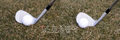 어프로치 샷을 잘하기 위해선 계획한 거리를 정확하게 보낼 수 있어야 한다. 이때 필요한 게 백스핀이다. 그린에 착지한 후 많이 구르지 않고 멈춰야 계획했던 거리를 확보할 수 있다. 백스핀의 양을 많이 발생시킬 수 있는 방법 가운데 하나가 페이스 중앙(사진③)이 아닌 토우 쪽(사진④)으로 타격하는 방법이다.