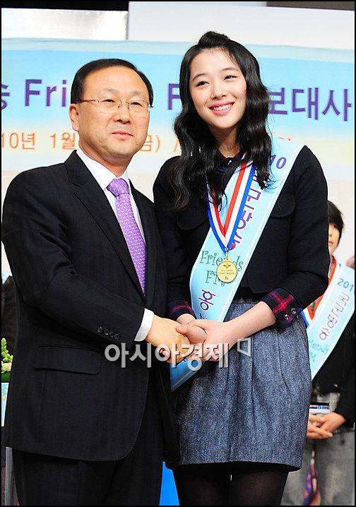 [아시아경제 박성기 기자]그룹 'F(x)'(에프엑스)의 멤버 설리가 29일 오후 2시 서울 용산구 국방홍보원에서 진행된 '2010 국군방송 Friends FM 홍보대사 위촉식'에서 김종찬 국방홍보원장과 포즈를 취하고 있다.